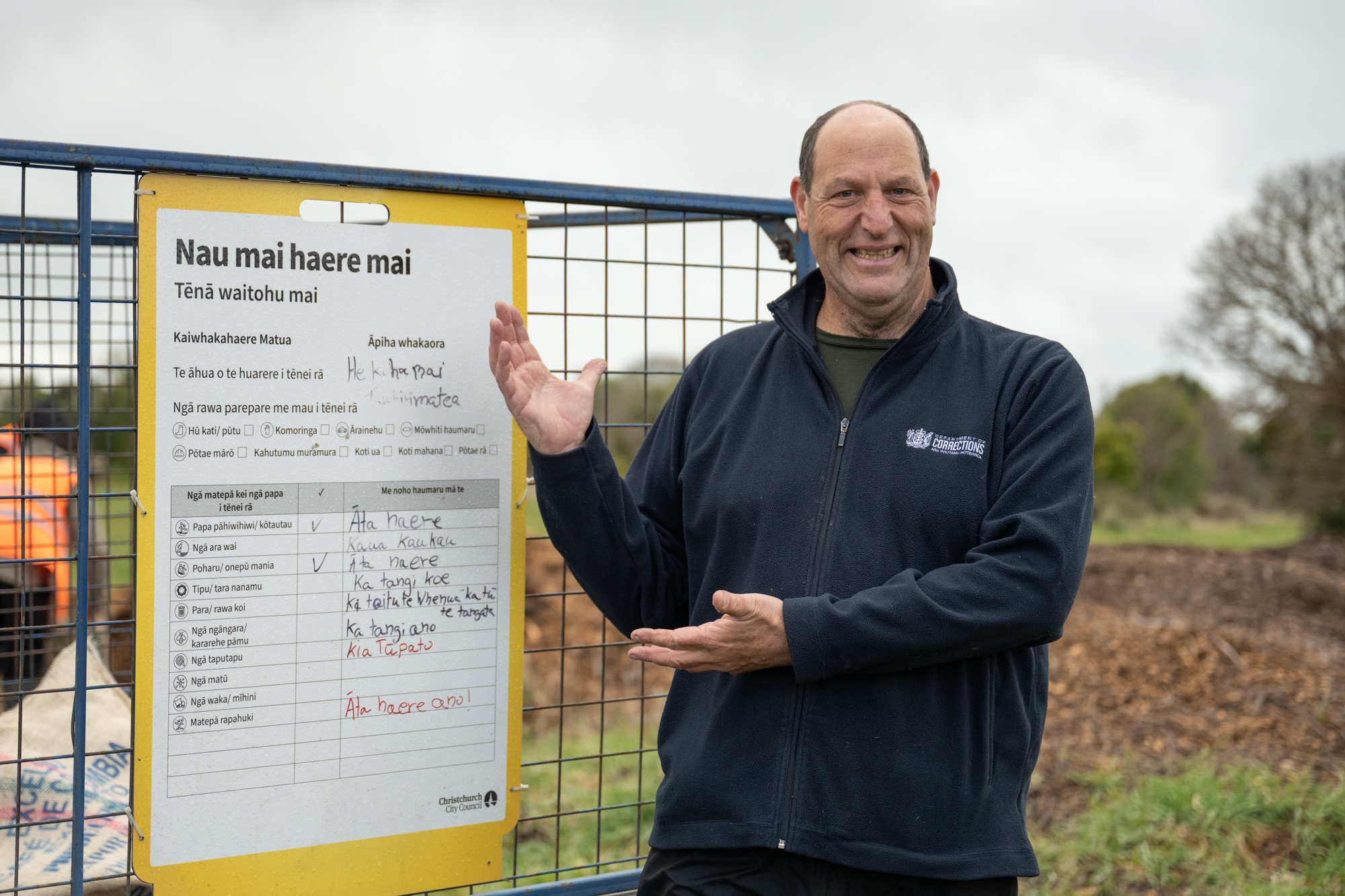 Sarah (ranger) came to me last year and said, Look, we have these health and safety boards, would you like one? I said, Yeah, that will be lovely, but what about one in te reo Māori? She gave me the one in English, and about three months later, she comes to me, here it is in te reo Māori.
