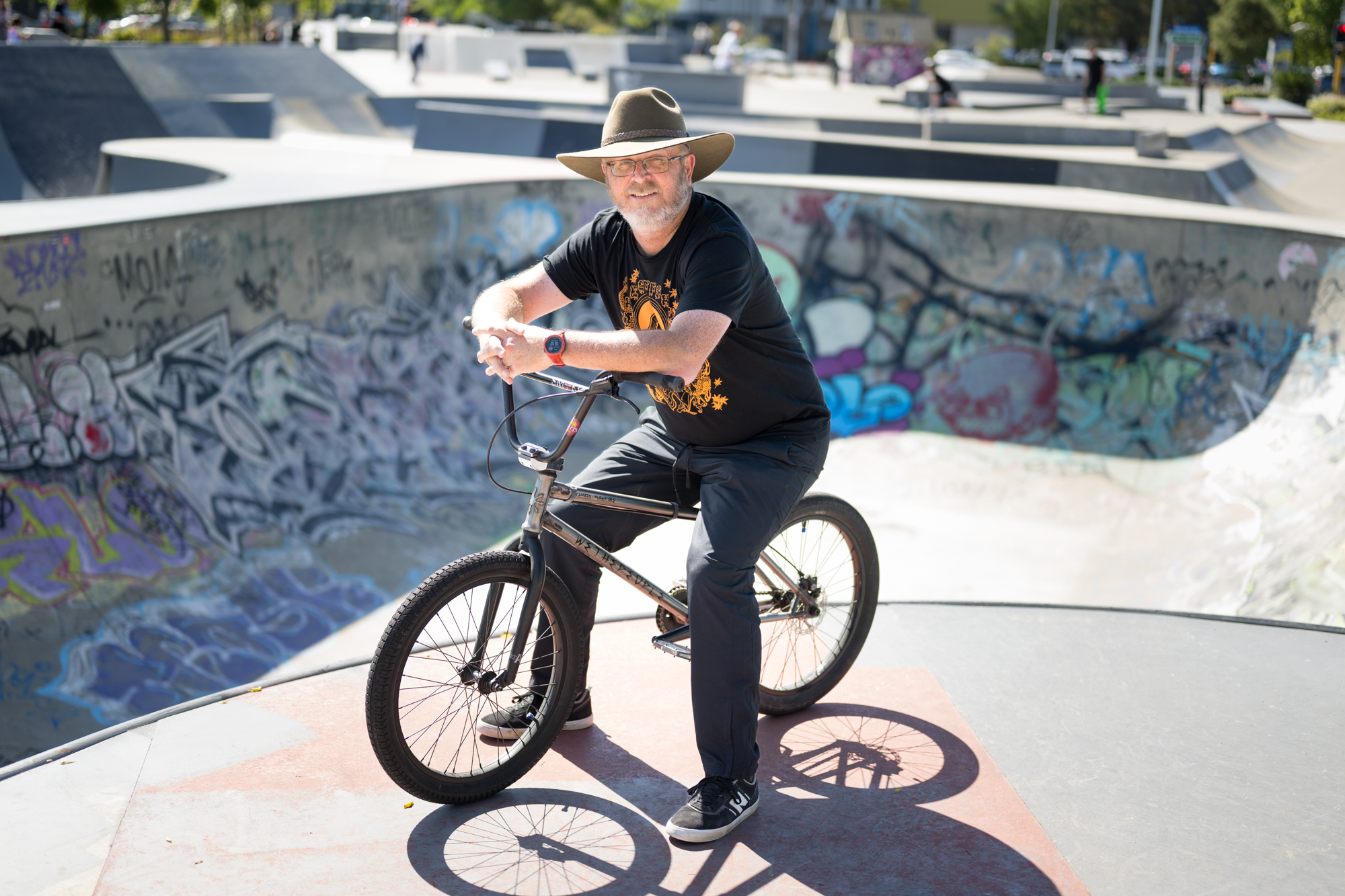 But it does seem like it’s crying out for some organized street art. It’s a skate park. It’s supposed to be bright-colored and covered in paint and graffiti and art. The skateboarders will tell you the same thing. It’s a creative space. That’s probably part of the appeal for me too, because I do lots of art.